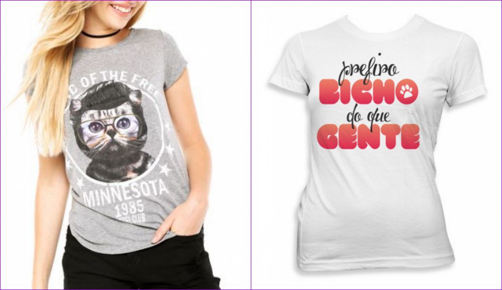 A T-Shirt da esquerda você encontra no site da Dafiti. Já a da direita, você encontra no site Diva Depressão. Eu não sei vocês, mas eu amei a segunda!